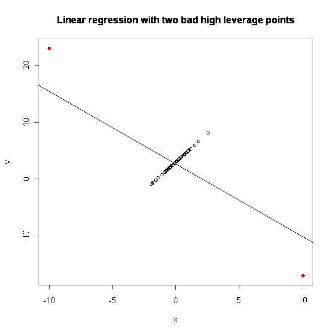 5 – Plot of Linear regression example with two extreme outliers (high leverage points)