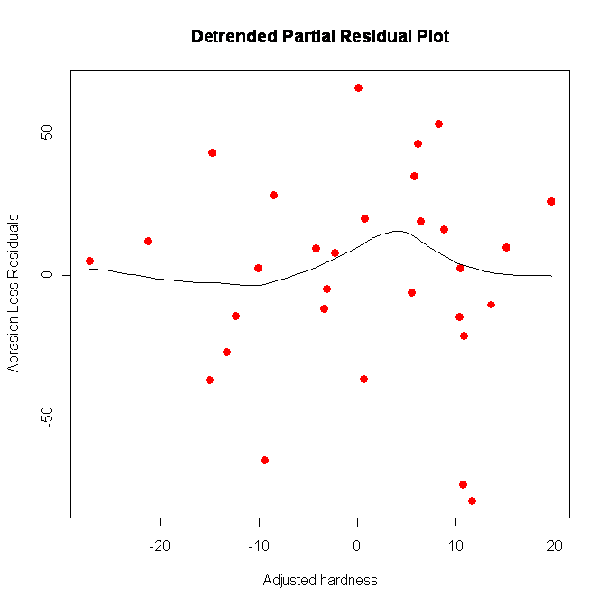7.6 – Partial residuals plot of Abrasion Loss and Adjusted Hardness